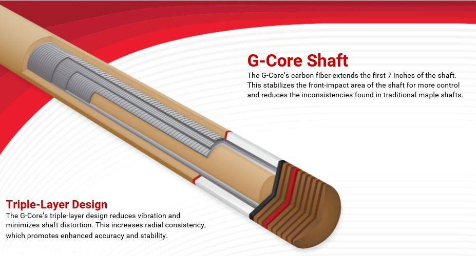 Radial konsistens kapacitet af akslen udføres det samme på hvert slag, uanset orientering. Kulfiberkernteknologien, der findes i G-Core, gør den til en af de mest konsekvente radiale aksler på markedet. G-Core giver altid en mere lige kuglebane, hvilket minimerer behovet for at kompensere for spin og kast.