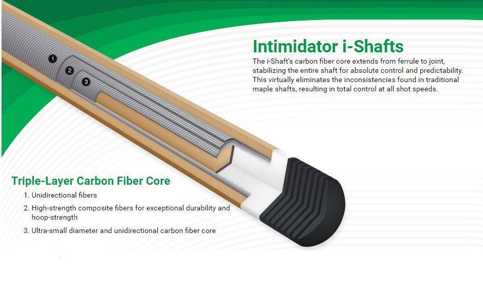 i-Shaft's kulfiberkerne strækker sig fra ferrule til led og stabiliserer hele skaftet for absolut kontrol og forudsigelighed. Dette eliminerer praktisk talt uoverensstemmelserne i traditionelle ahornskafter, hvilket resulterer i total kontrol ved alle skudhastigheder.
