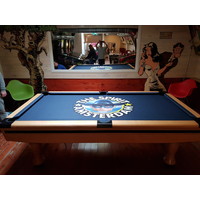 Transform your pool table with a unique, high-quality printed pool cloth. Whether you want a logo, image, or text printed on it, we can make it happen. Our pool cloth is white, so you can choose any background color you like. For the best results, ensure your image is high-resolution. Send your design to [email protected] and receive a proof before we start production. Assembly is available starting at €250.00 including VAT. Visit our store in Almere or order online for free shipping within the Netherlands on orders over €125.