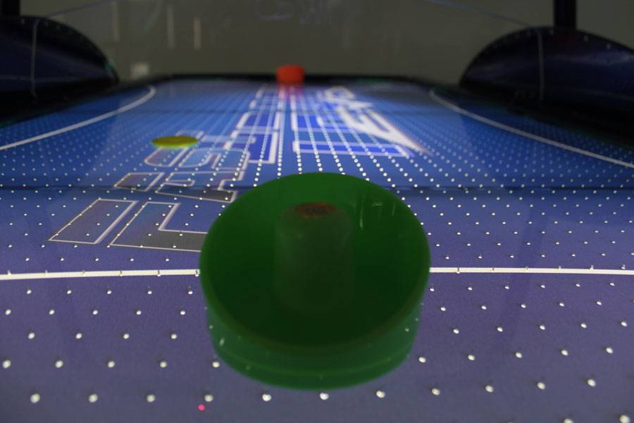 Deze airhockey werkt met een PCB en kan de ELEKTRONISCHE MUNTACCEPTOR T41 gebruiken .