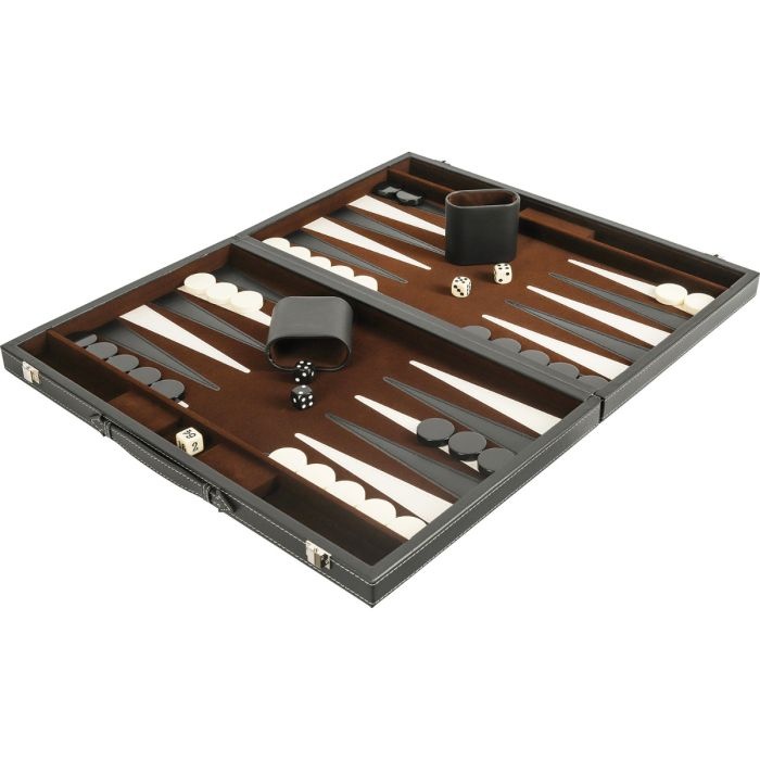 Backgammonspel van hoge duurzame kwaliteit met ingelegd vilt en kunststof stenen.