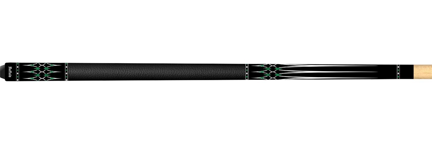 De butt van de Argo 3 Buffalo poolkeu heeft een prachtig UV-print patroon in groen en wit op de zwart geverfde esdoorn butt.