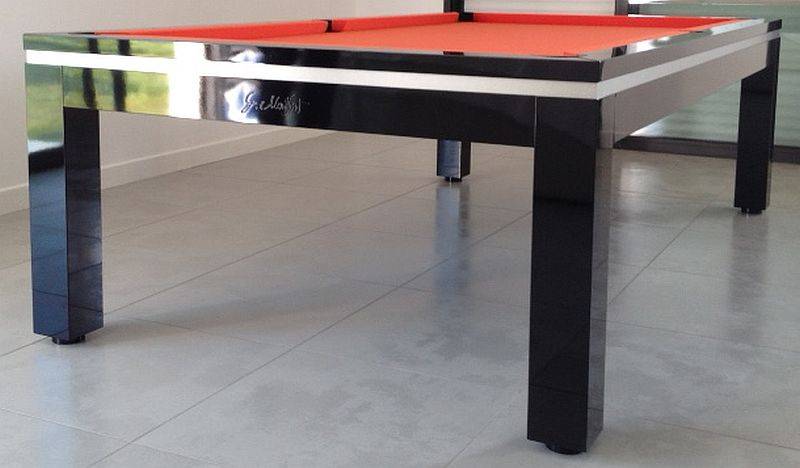 Biljart is door middel van stelpoten op hoogte te stellen. Waardoor het biljart uitmatte geschikt ook is als eettafel.