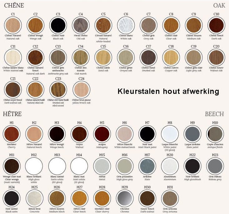 In de houtsoorten Beuken of eiken massief