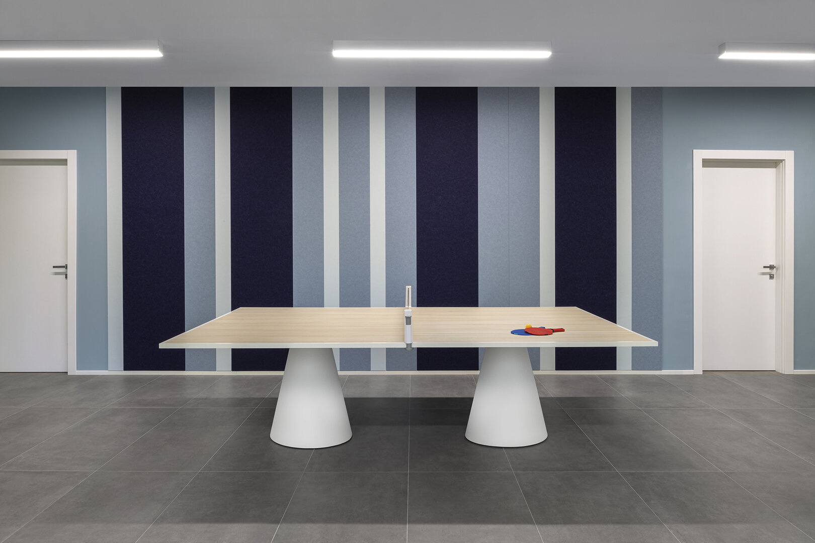 Dada is een modulaire tafeltennistafel waarbij flexibiliteit centraal staat. Twee afzonderlijke elementen, samengevoegd door het gebruik van het net, waardoor geweldige wedstrijden kunnen plaatsvinden en 16 mensen kunnen worden verwelkomd om samen te zitten en te genieten. Een houten speelveld ondersteund door een witte conische voet en een memorabele wedstrijd die erop wacht om gespeeld te worden.