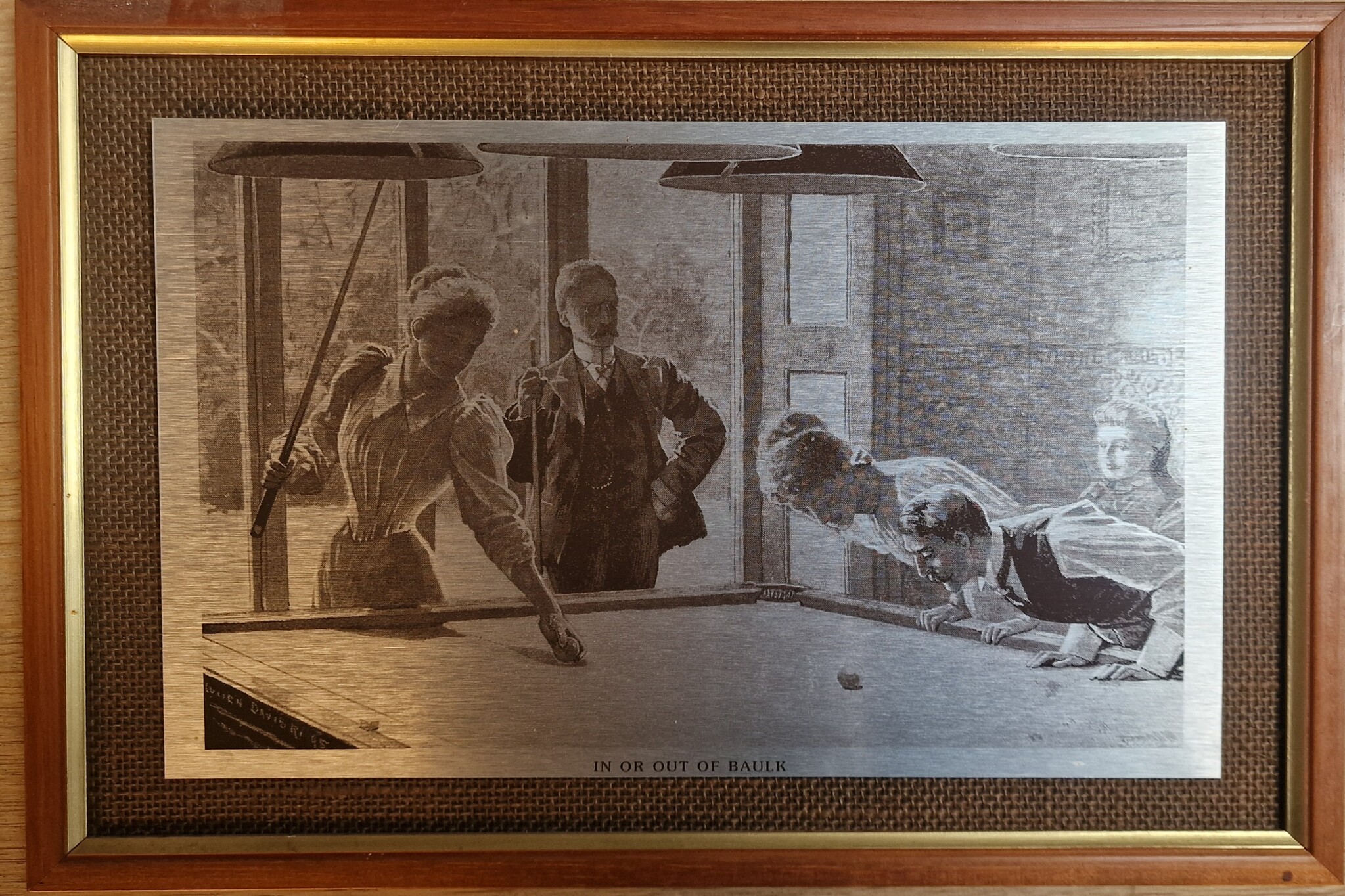 Geëtste afbeelding biljarten. Antiek 28,5 x 18, 5 cm
