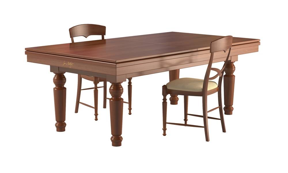 Biljart is door middel van stelpoten op hoogte te stellen. Waardoor het biljart uitmatte geschikt ook is als eettafel.