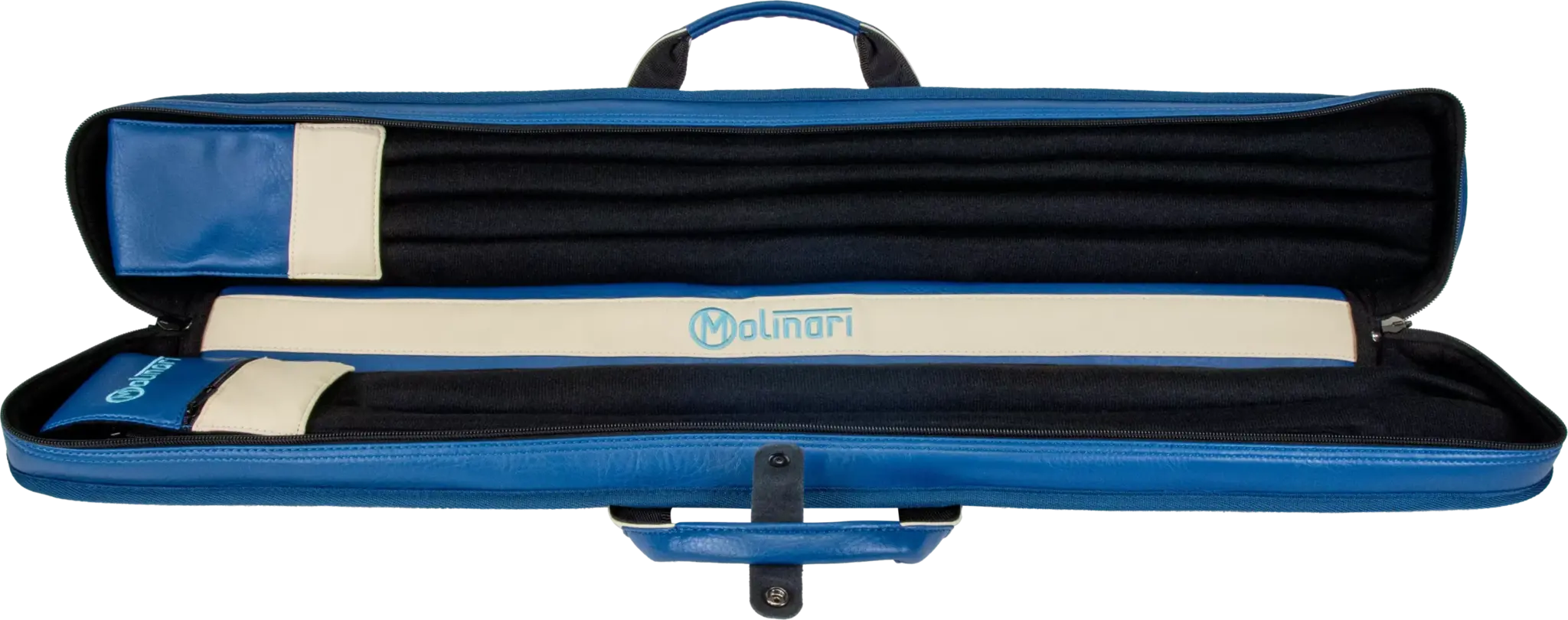 Deze hoog kwaliteit tas is gemaakt van Ultra-vinyl en dubbel gestikt voor extra stevigheid. De ultieme tas van Molinarie voor de echte biljarter die zijn materiaal goed en langdurig wil beschermen. Uitgevoerd met een draagriem om de tas over de schouder te kunnen meenemen. Deze Molinarie retro tas is te gebruiken voor maximaal 2 ondereinden en 4 topeinden die in een sleave worden geschoven. Hierdoor liggen ze nooit tegen elkaar aan en zijn ze goed beschermend. Op de tas zitten nog extra opberg vakken om kleine biljart accessoires in te stoppen of een een telefoon en portemonnee.